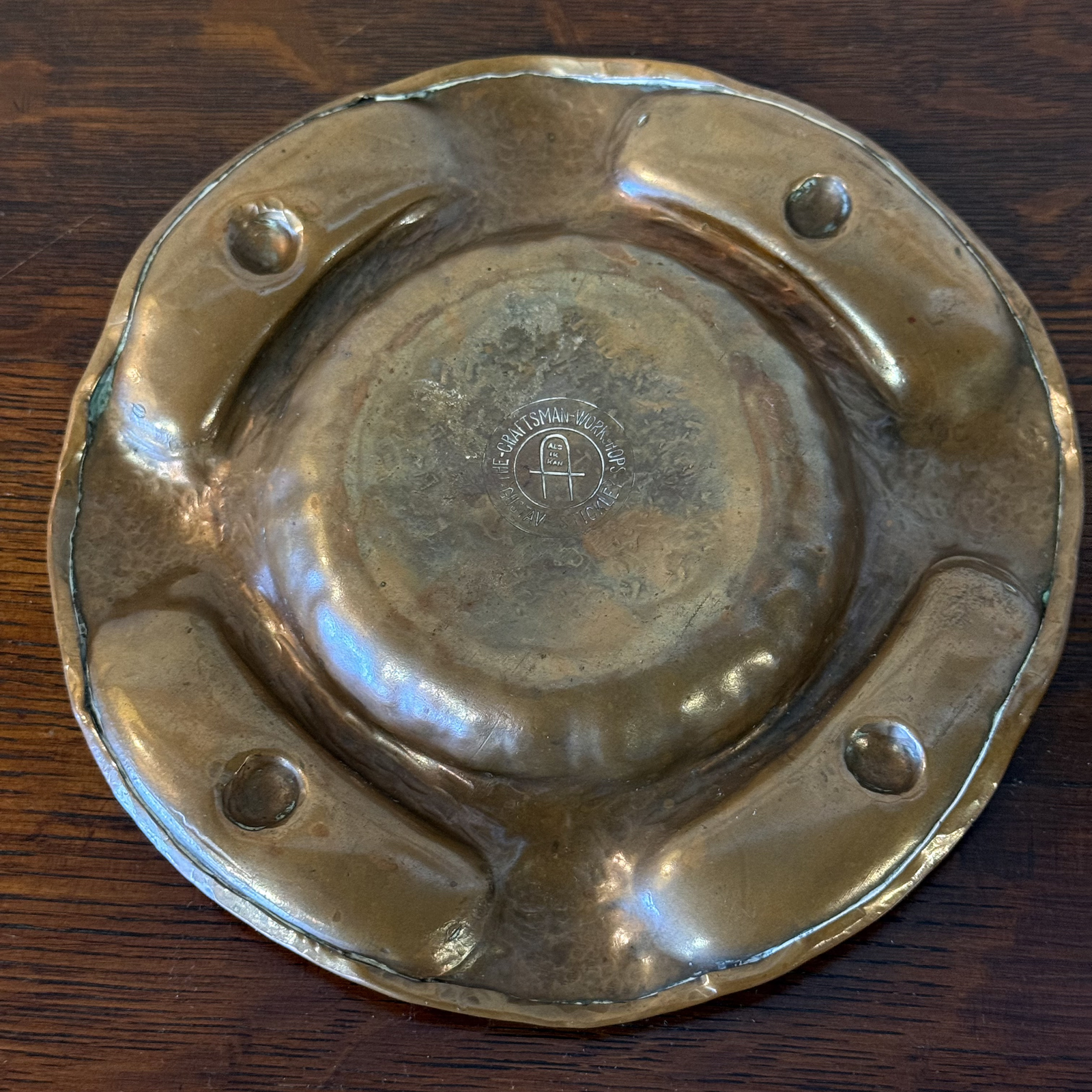 Ideal for correspondence, calling cards, or small personal items, it serves as both a practical accessory and a collectible example of early 20th-century American design. This 7″ diameter tray was probably cleaned decades ago, otherwise in good condition.