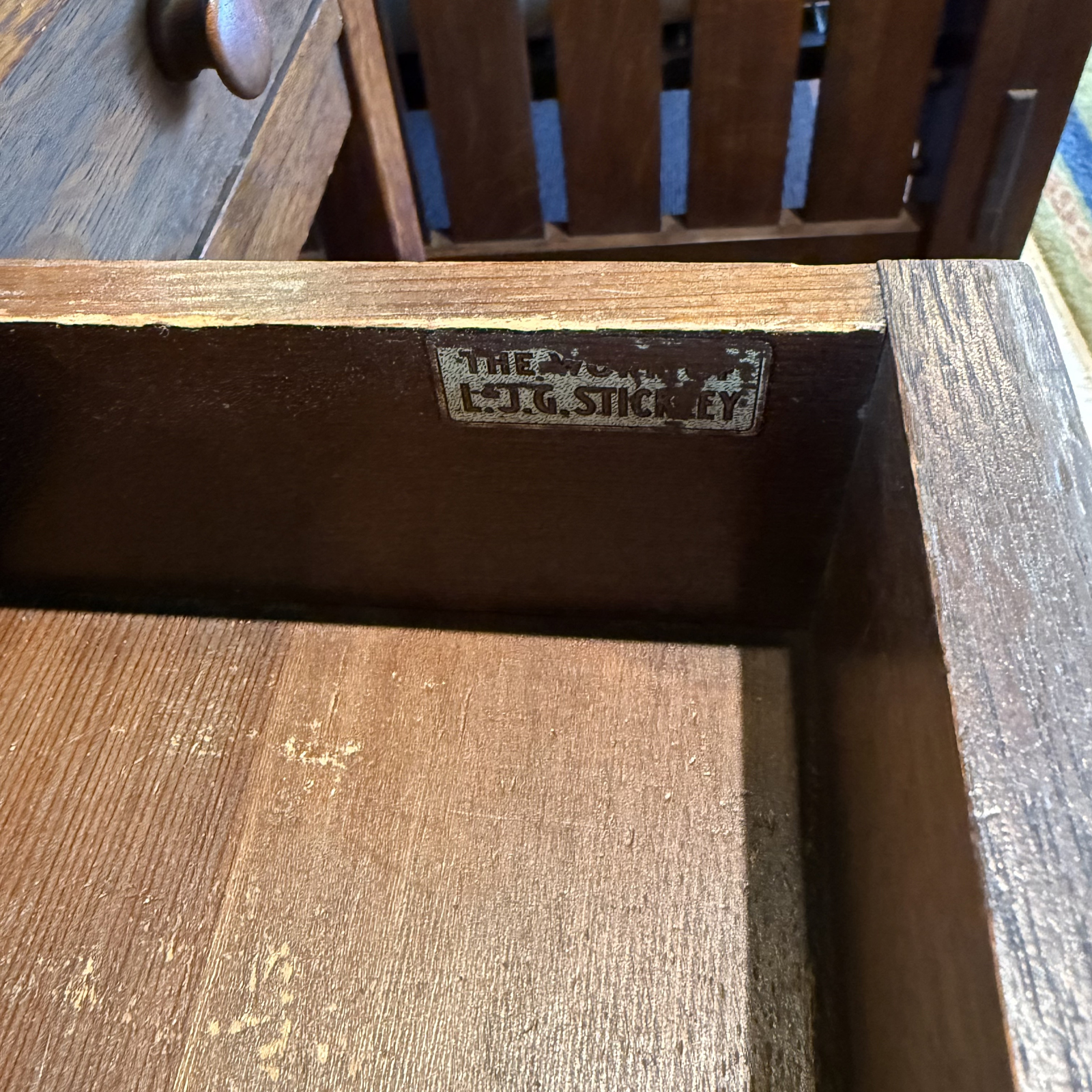 L. & J.G. Stickley was founded in Fayetteville, New York, in 1903, and quickly became a strong competitor to Gustav Stickley’s Craftsman Workshops in nearby Syracuse. Brothers Leopold and John George Stickley built a company rooted in the ideals of honest craftsmanship, simple design, and functional beauty. The furniture they produced reflected the same Arts and Crafts philosophy as their brother Gustav’s, yet developed a distinctive identity through subtle design variations, superior joinery, and high-quality materials — particularly quarter-sawn American White Oak.